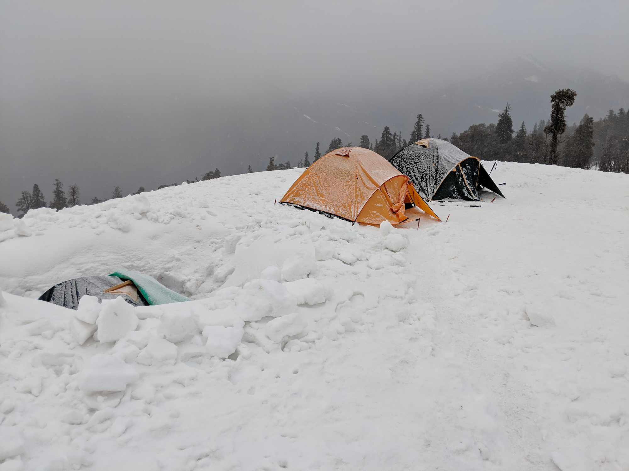It snowed throughout the night, and the guides made a decision to not summit in bad weather. Disappointed, we made our way down to Sankri.
