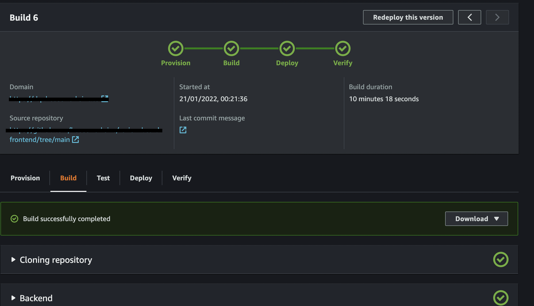 Amplify also offers logs for each step in the deployment process.